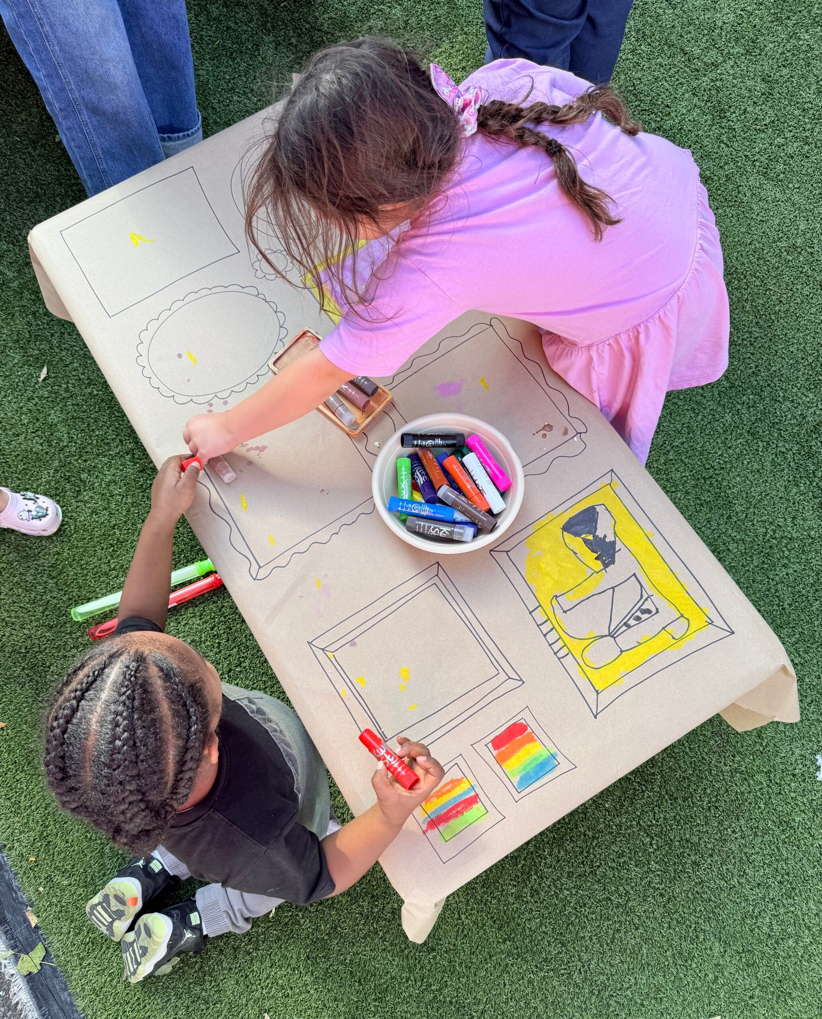 This depends on the setting. For school and museum programs, children may participate independently. For home-based or community sessions, caregivers may be encouraged to join in the creative experience. Specific details will be provided for each session.